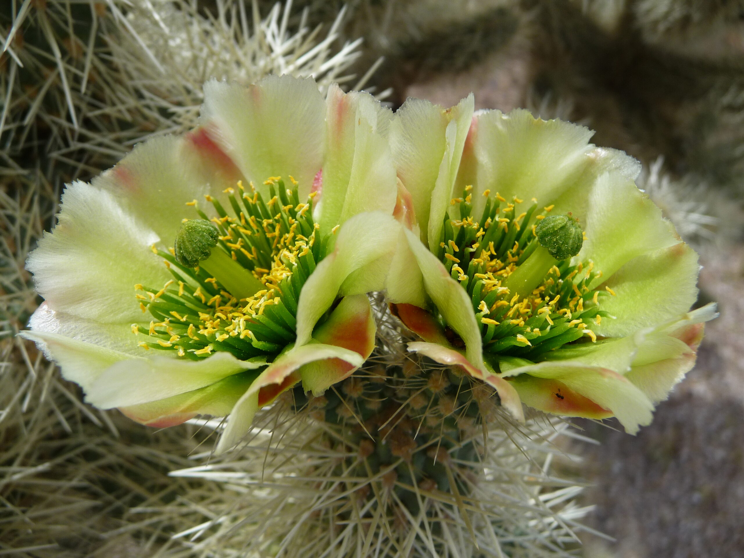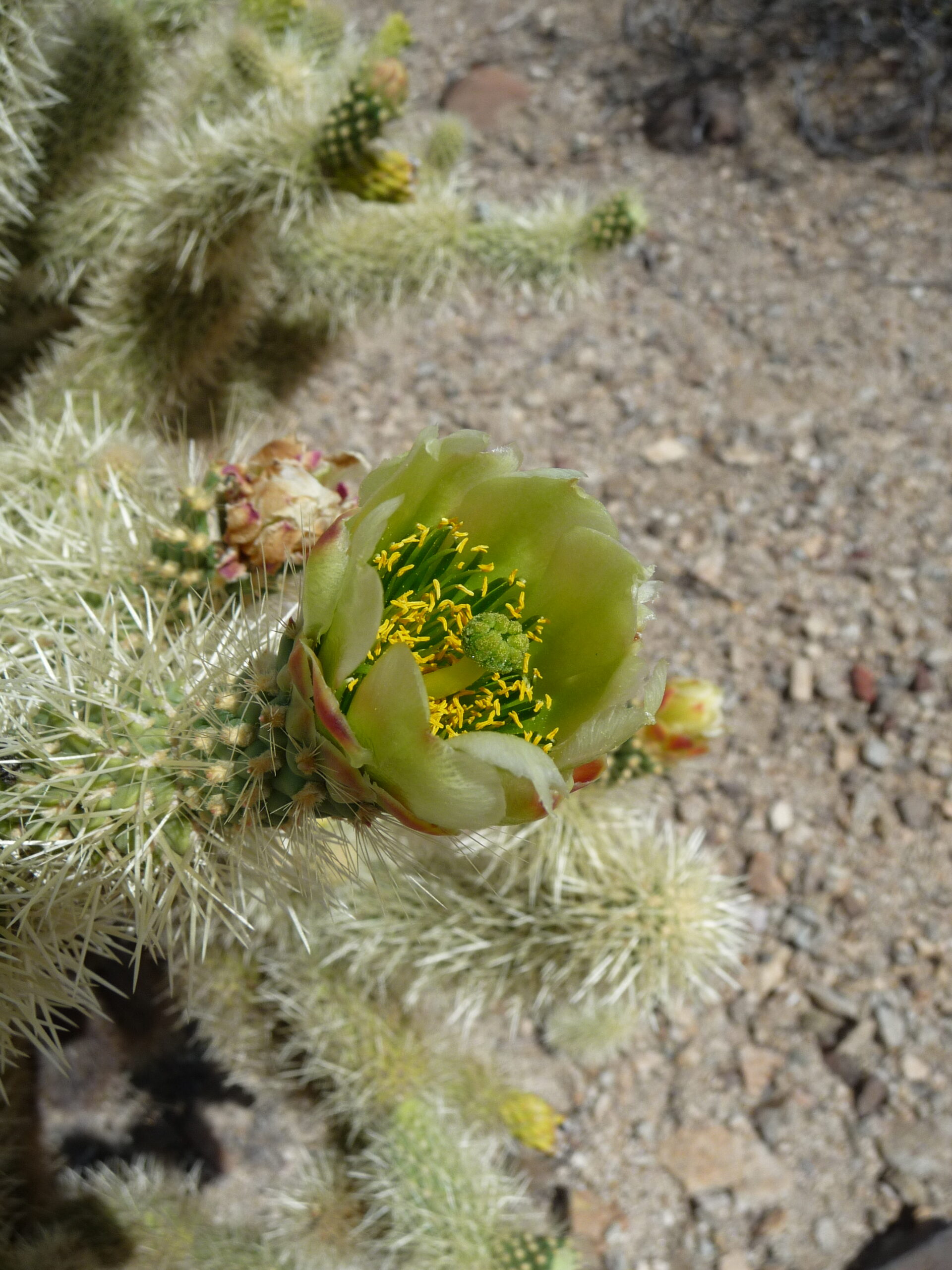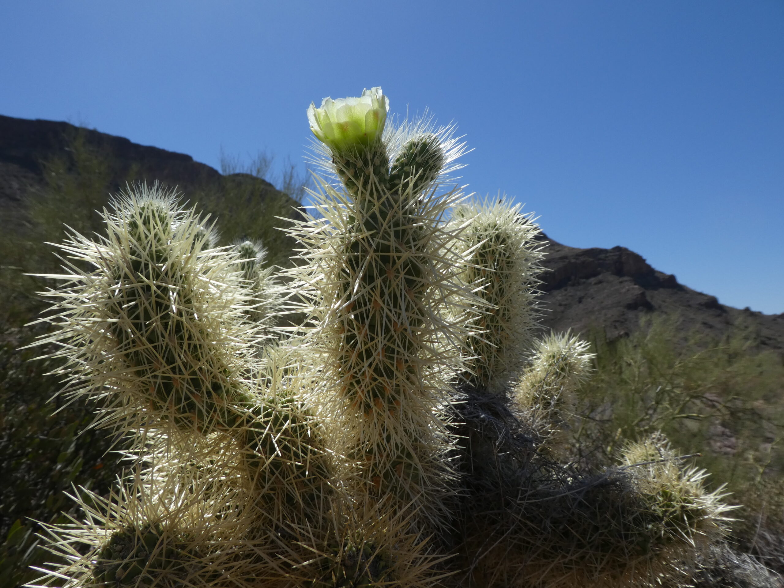 Ihrem nur von weitem kuscheligen Aussehen verdankt diese Kakteenart in ihrer Heimat, der Sonora-Wüste in Amerika, den Trivialnamen „Teddy Bear Cholla“ (Teddybärkaktus). Anders als ein Teddybär ist dieser Kaktus aber alles andere als kuschelig.