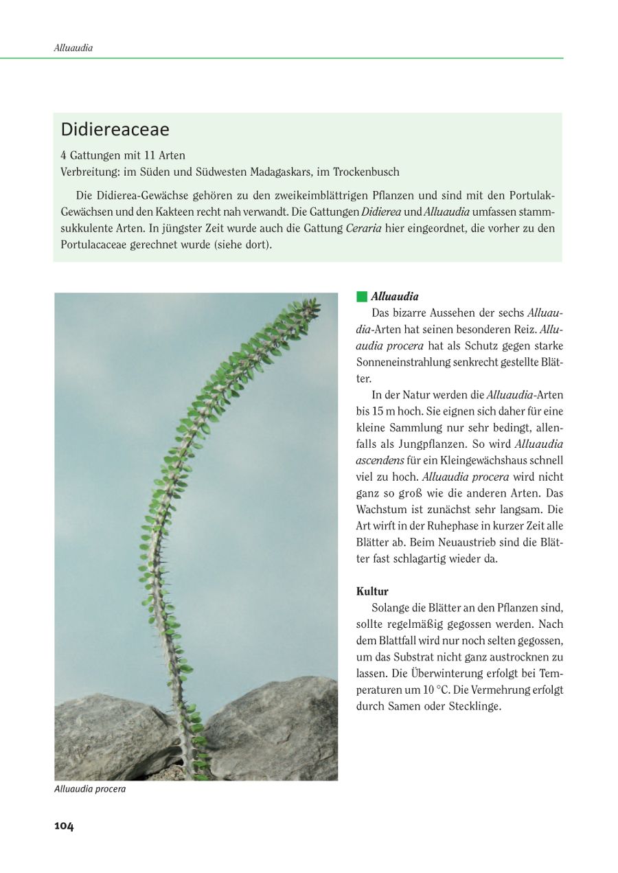 Die fast unüberschaubare Vielfalt der sukkulenten Pflanzen übt eine große Faszination auf uns aus. Aus dieser enormen Fülle hat der Autor Rudolf Schmied in der KuaS immer wieder die „anderen Sukkulenten“ vorgestellt, die sich gut am Fensterbrett, im Gewächshaus oder im Garten kultivieren lassen. Das Buch fasst bereits erschienene Beiträge aus seiner Feder sowie noch unveröffentlichtes Material in kompakter Form zusammen – als eine reich illustrierte und persönliche Auswahl sukkulenter Vielfalt, als praktischer Ratgeber für die Pflege dieser Pflanzen und als Anregung für den Aufbau einer eigenen Sammlung.