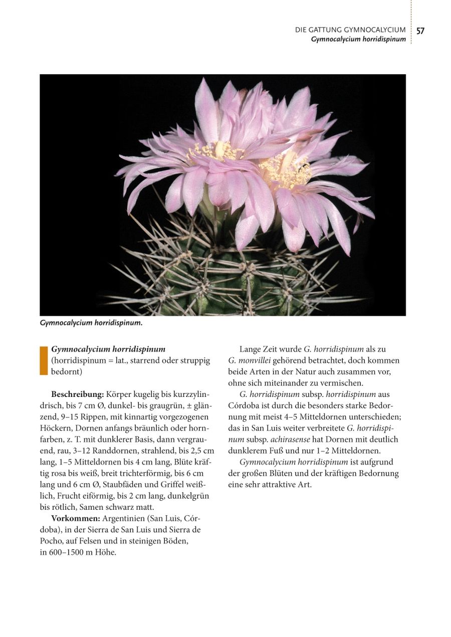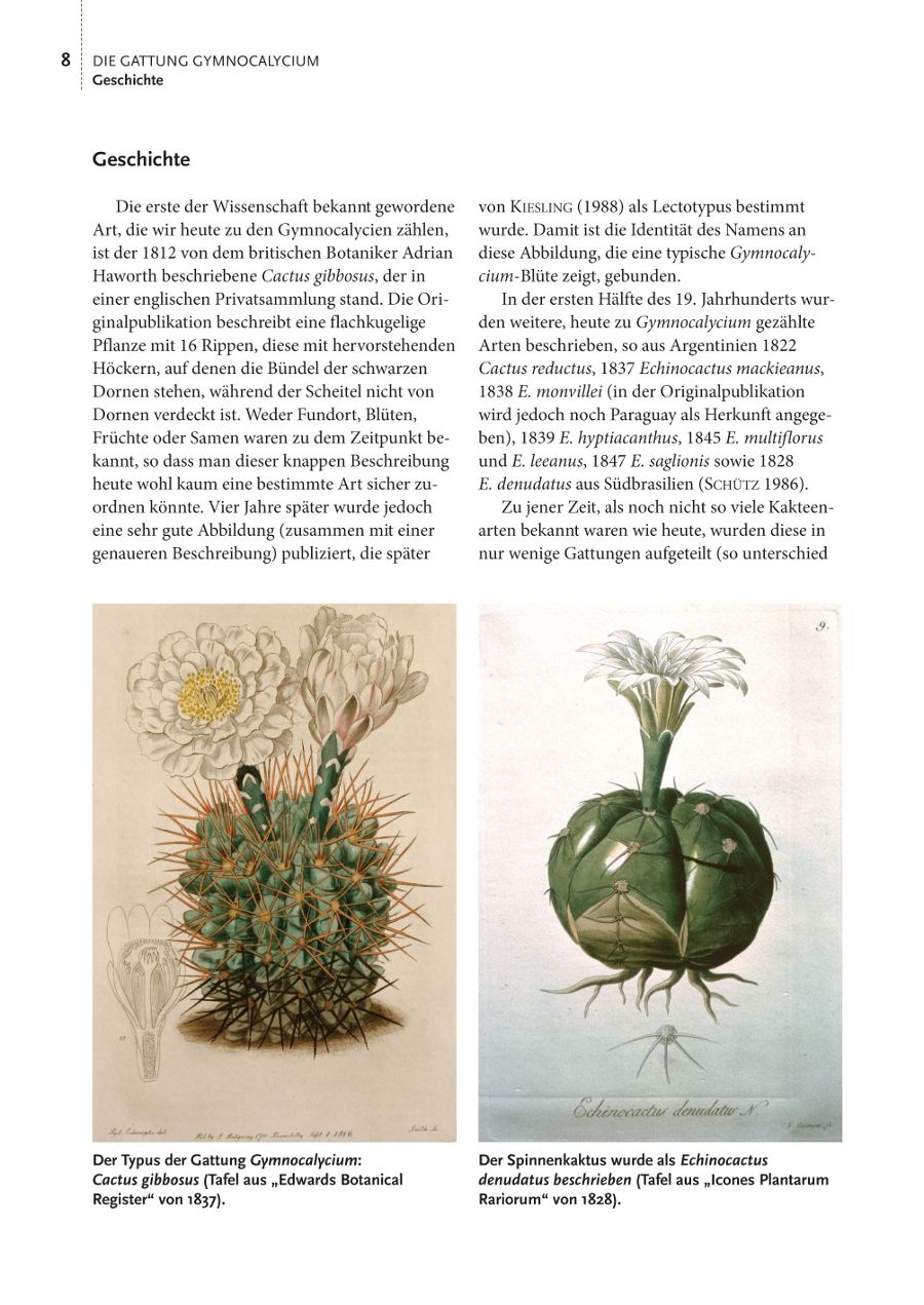 Gymnocalycium ist eine der beliebtesten Kakteengattungen, aufgrund ihres Formenreichtums, der vielfach attraktiven Bedornung und der einfachen Pflege. Im Text und mit 200 Farbfotos aus Kultur und Natur wird die Gattung mit ihren über 50 Arten in den nun sieben Untergattungen vorgestellt sowie Tipps für die Kultur gegeben.