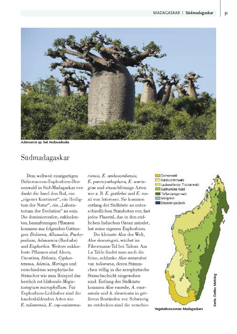 Madagaskar – Hotspot der Biodiversität. Die Pflanzen- und Tierwelt Madagaskars sind weltweit einzigartig. Der Autor Moritz Grubenmann stellt Ihnen mit faszinierenden Bildern diesen außergewöhnlichen Lebensraum vor. Erleben Sie die Welt der Pachypodien, Aloen, Euphorbien sowie der Chamäleons, Lemuren und vieler anderer seltener Tiere.